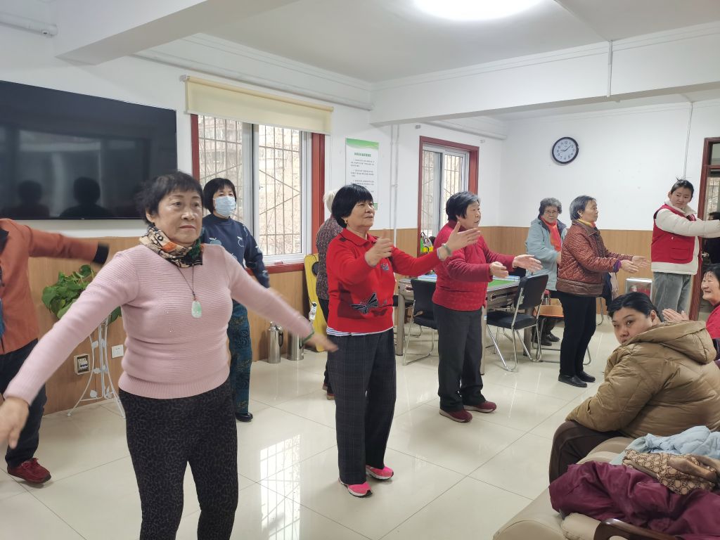活动现场,社工向老年人讲解了穴位拍打操的强身健体作用和基本动作,老人们学的认真仔细,和社工一起伴随着轻快的音乐,积极参与拍手操的动作练习,大家互相交流动作要领和运动效果,现场一片欢声笑语。