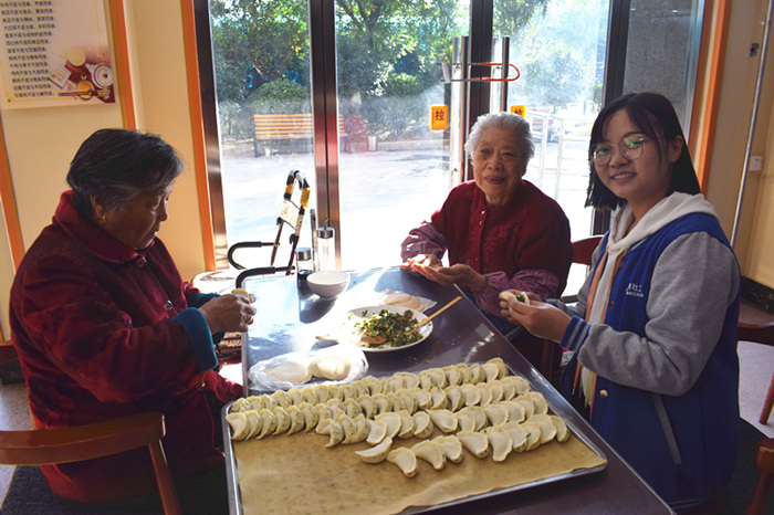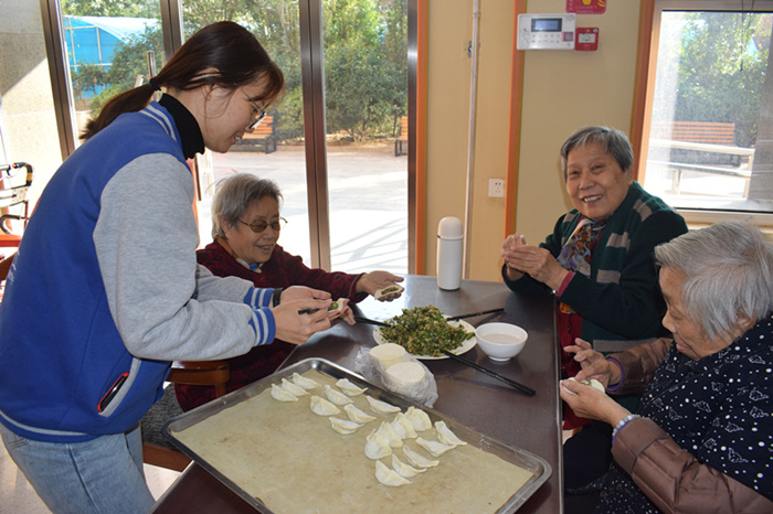 社工就这一问题想过多种解决办法,但都没能从根本解决问题。最终社工链接到志愿者中心的刘老师,刘老师是他们团队的负责人,他们平常会做一些志愿服务。社工跟他讲了一下福利中心的情况和老人们的需求。刘老师说:“没问题,我们来为老人包饺子!”