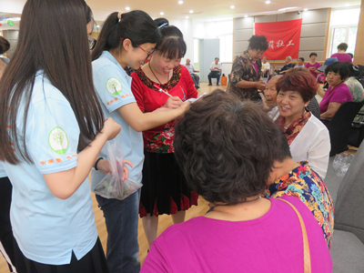 夏日的炎热阻挡不了志愿者的热情,爱同行志愿服务队的志愿者早早来到了活动现场,帮助项目组社工布置场地,指引参加活动的人员签到入座,维持现场秩序。