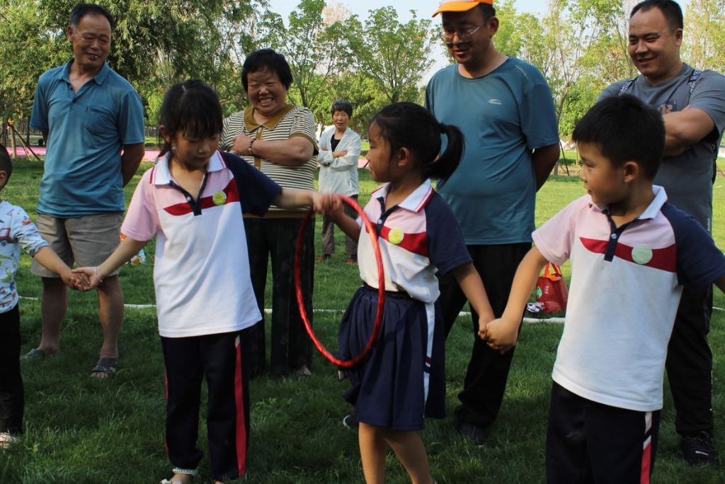 紧接着是“一圈到底”游戏。孩子们需要手牵手依次穿过呼啦圈,从而展现他们的协作能力和身体协调性。家长们在旁边鼓励和指导,帮助孩子们克服困难,顺利完成任务。游戏中,孩子们不仅锻炼了身体,还学会了勇敢面对挑战和困难的精神。