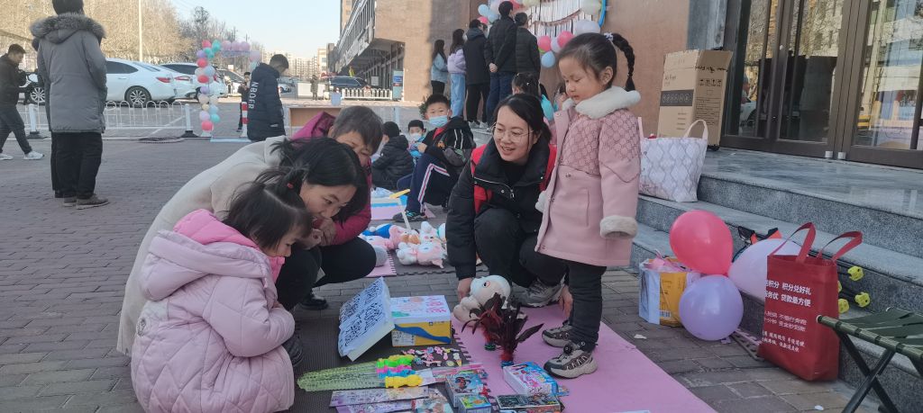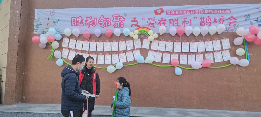 在活动现场,大人们领着自家的小朋友拿着家里闲置的毛绒玩具、故事书、画册、玩具等物品前来置换。凤城街道社工站社工在一边在活动现场进行秩序维护,一边向来往的居民介绍本次活动。活动现场看到小朋友站在摊位前兴奋的吆喝着招揽着顾客:“快来看,快来买,来晚的没有啦!”不一会儿功夫小朋友们就用自己的玩具换到了自己心仪的玩具。除了闲置物品交换之外,活动现场还同步开展了鹊桥相亲会,让居民通过相亲会找到自己心仪的另一半,为社区单身青年创造一个沟通、交流的机会,拓宽大家的交友渠道,拉近社区青年人之间的距离,增加社区居民的幸福感和归属感。