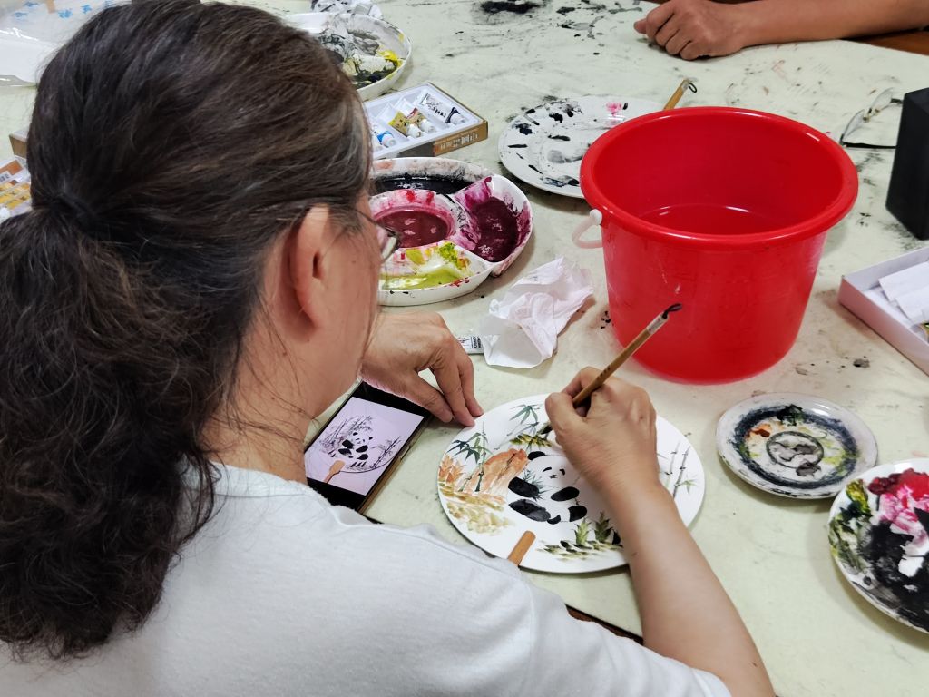 在老师的悉心指导下,社会组织成员们纷纷拿起毛笔,蘸满颜料,在宣纸上创意发挥。他们或凝神静气,认真勾画每一个细节;或相互交流,分享彼此的心得体会。现场气氛热烈而和谐,充满了浓厚的艺术氛围。