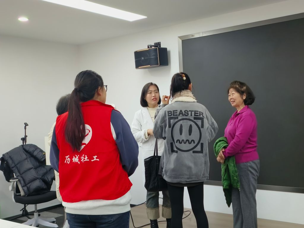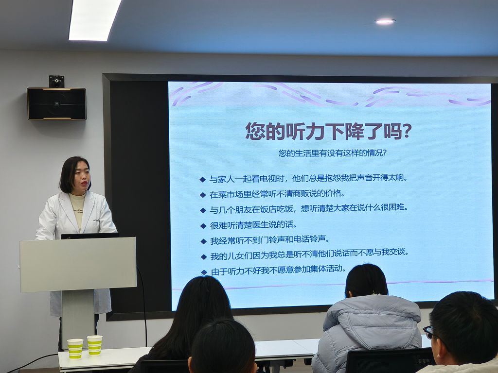 活动开展前期,社工站积极链接济南康之声听力技术有限公司的听力专家资源,为爱耳宣传活动做好准备。活动现场,耳科医生为居民讲解了电子产品对耳朵听力的损伤、生活中不良习惯对听力的损伤、耳朵常见疾病及耳朵保健知识等,指导居民在日常生活中养成保护耳朵的良好习惯。同时,活动设置了互动问答环节,工作人员耐心解答预防耳聋的相关咨询,并针对居民耳部特殊症状提出专业性建议。活动过程中,社工随时关注居民动态,并及时耐心的解答居民存在的问题,积极推动广大群众养成健康用耳习惯,自觉减少噪声影响,保护听力健康。