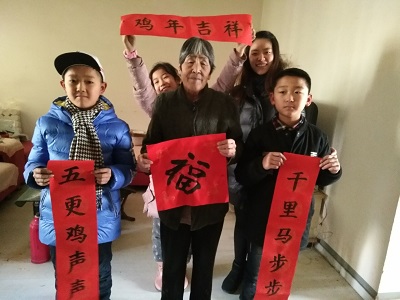 1月20日下午1点半,小雏鹰志愿者们早早来到智远街道图书分馆,在图书管理员张老师和老年志愿者的引领下,孩子们写下了带着满满爱心的福字和春联。接下来,“银龄伙伴”项目社工带领小志愿者们来到那些春节不能和子女团聚的空巢老人家中,为他们送去社区的关爱和新年的祝福,老人对我们的到来表示非常欢迎。让我们印象深刻的是,王阿姨是独居空巢老人,患有心脏病,平日里很少出门,看到我们的到来,表示非常开心。社工首先询问了王阿姨的身体近况,并传达了对老人的美好祝愿,希望老人身体健健康康;“祝奶奶新年快乐!”、“祝您身体健康”,其中一名小志愿者说,并将自己写的春联和“福字”送到老人手中。崔阿姨握着小志愿者的手激动地说“谢谢孩子们,谢谢社工和社区的关心与关照”。