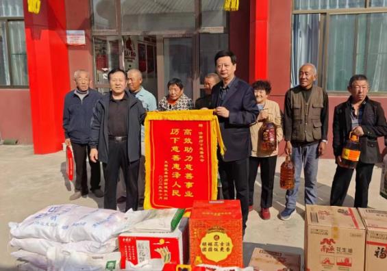 仪式开始,桑梓店街道社会事务科分管领导张克敏和铁匠村副书记怀宝山分别对到来的区领导、爱心人士及受捐代表表示热烈的欢迎与感谢,并向各位领导介绍了辖区困境人群和高龄老人的基本情况。随后,于晓东局长和爱心捐赠单位为受捐村民代表送上米、面和油等慰问品,活动的成功实施离不开社会爱心人士的大力支持,在此特别感谢济南历下慈善总会和济南市历下区砺兵退役军人应急服务中心的物资捐助。仪式上,天桥区民政局四级调研员梁亮和桑梓店街道社会事务科分管领导张克敏为爱心单位代表颁发锦旗。