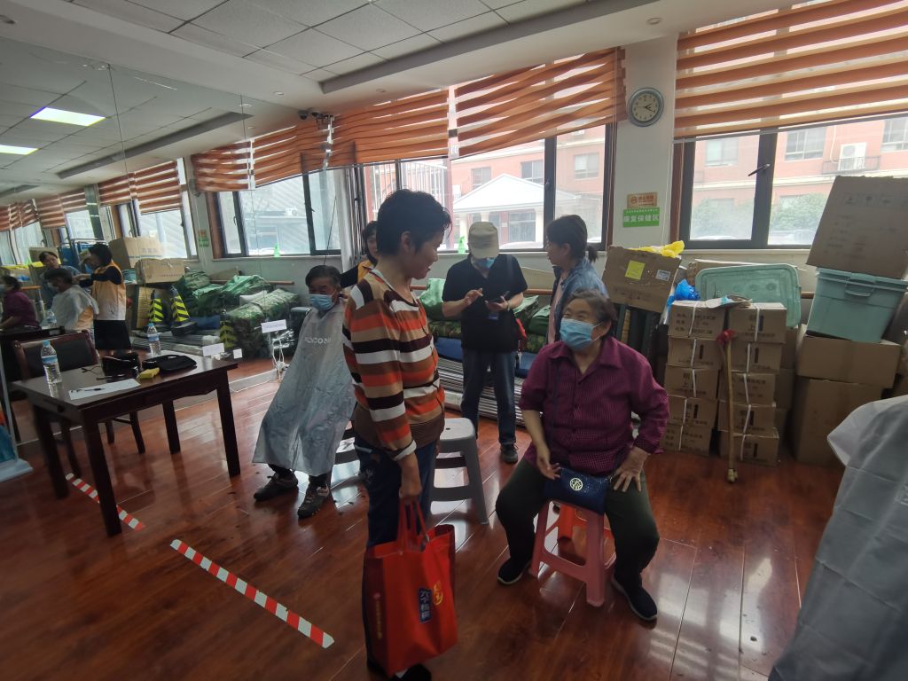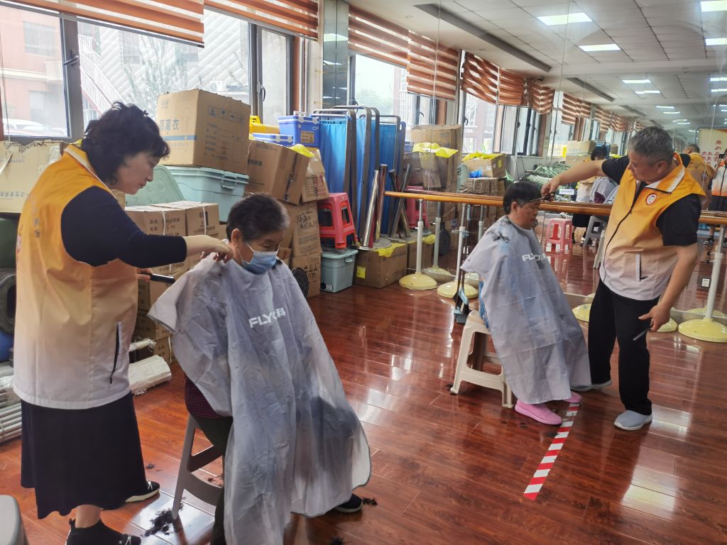 考虑到夏季高温天气易引发老年人身体不适,组织成员在活动筹备阶段讨论决定将活动场地转移到室内。在历园新村社区活动室内,成员们在组织骨干的带领下协调有序地摆放好理发工具、座椅,打扫卫生。闻讯而来的长者们在准备好的座位上耐心等候,相互交流生活近况。“前几天我在家里蒸的包子,这次面发的可好了,一会儿理完发你跟着我回家拿点尝尝!”,“正好我这两天腰疼不愿做饭,都是买着吃,排到我了,我先去理发!”居民们在常态化的便民服务中逐渐熟络起来,接地气的言语间升腾着浓浓的邻里之情。组织成员娴熟地为老人们修剪头发,其他成员有的在旁边及时清扫碎发,有的陪老人聊天,现场气氛融洽。经过组织成员的巧手设计,老人们的精神面貌焕然一新,看着镜子里清爽的发型,老人的心情也变得更加愉悦。