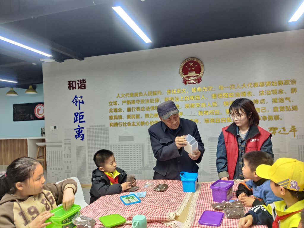 赵爷爷为儿童讲解种植技巧