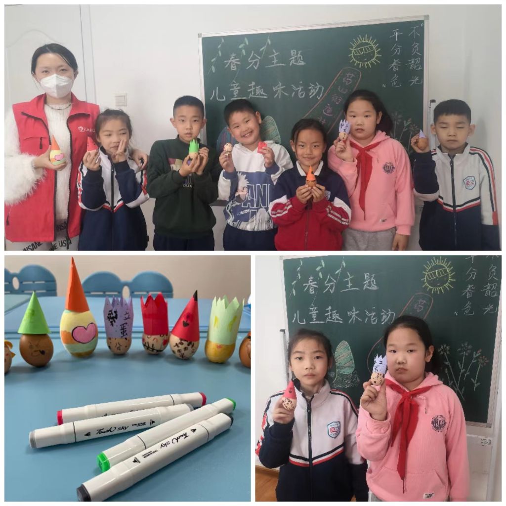 千花百卉争明媚,又见春分好时光。俗话说“春分到,蛋儿俏”,春分位列二十四节气中的第四,是“春天之半”的意思,在这一天昼夜平分。为积极开展“推进‘五社联动’ 关爱‘一小一老’”社工周主题宣传活动,丰富儿童节日体验,弘扬中华传统文化,提升儿童的动手能力,药山街道社工站在张庄社区为儿童开展春分主题活动。