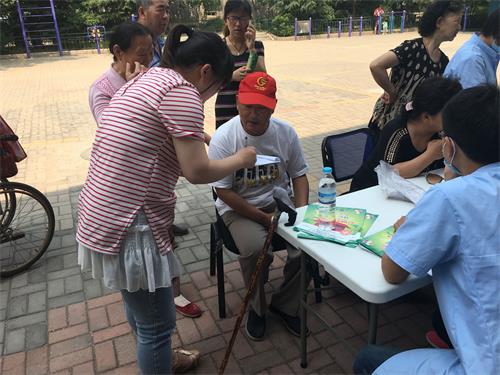 6月2日上午8:45在盛福花园居委会社区门前如期举行,在义诊开始之前,社工先组织社区居民签到。9点整医生按照签到顺序正式为社区居民进行血压、心率及口腔检查,并在检查的过程中为社区居民提供一些日常口腔护理的小技巧。社区居民对义诊很满意,“这几个医生很好,说的都很实在,而且态度也非常好”,并且推荐了许多自己认识的社区居民前来参加义诊。此次义诊活动持续了2个小时,11:00结束。