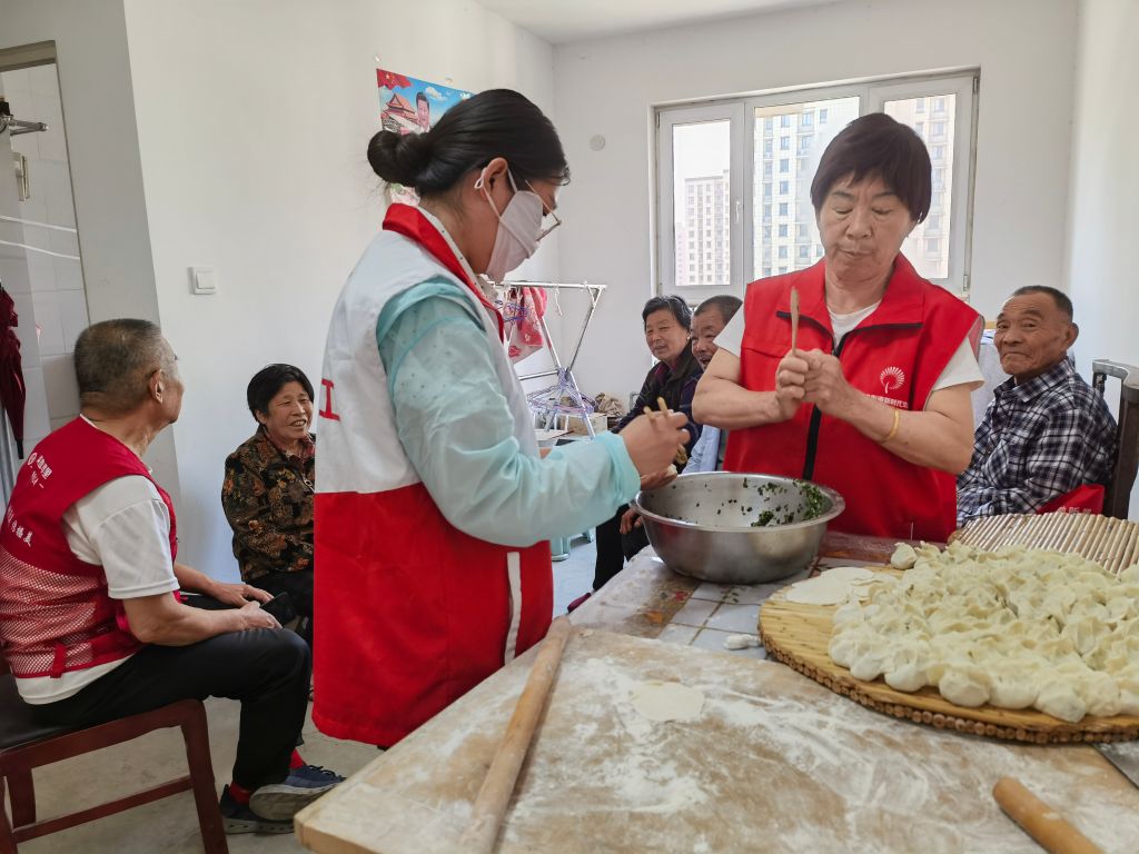 活动开始前,社工和孝文化艺术团的爱心志愿者,提前准备好了各种调料、碗筷、锅、面粉以及馅料等。大家手法娴熟,分工合作,各程序有条不紊,洗菜、剁馅儿、和面,热热闹闹为老人们包饺子,现场洋溢着快乐的气氛。志愿者们为在一旁等候的老人们送上爱心甜点,和他们拉家长,了解老人们的日常生活状况。赶在午饭时刻,热腾腾的饺子出锅了,大家把饺子装好盘,送到老人手中。除此之外志愿者们还进行爱心义剪和血压测量活动,以实际行动体现对孤寡老人的亲切关怀,让老人感受到社区的关心和温暖,真正做到马甲红温暖夕阳红。