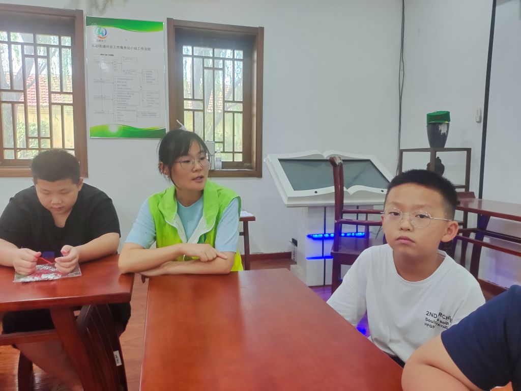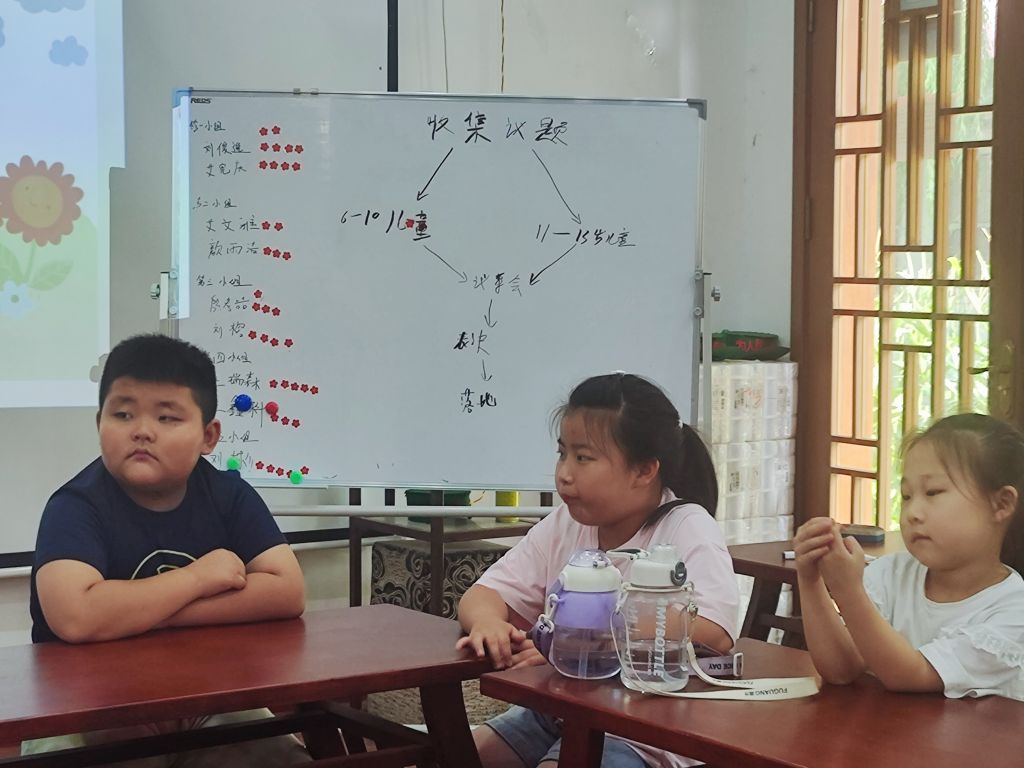活动伊始,社工介绍了儿童议事会的目的和意义,讲解作为小小议事员的内容等,让孩子们对议事会有初步的了解。随后,社工先带小小议事员们对暑假的活动进行回顾,让大家一起来聊聊“我的暑期生活”,每个人讲讲自己暑假的见闻、学到的东西、接下来想参加的活动等。在社工的引导下,小小议事员展开了激烈的讨论,有的议事员说想继续参加手工课堂,有的说希望有更多游戏的活动……在讨论过程当中,社工认真倾听小小议事员的心声,充分了解他们的想法和意见。同时,在讨论中还可以让社工借此走进儿童的世界,了解儿童的真正需求。