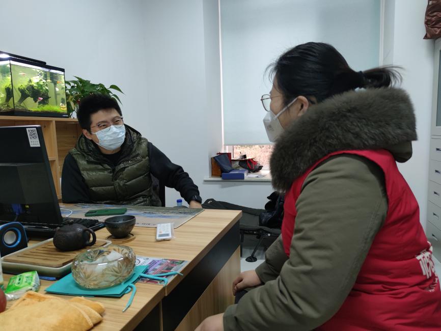 社工与泉景园社区书记商讨探访社区老党员事宜