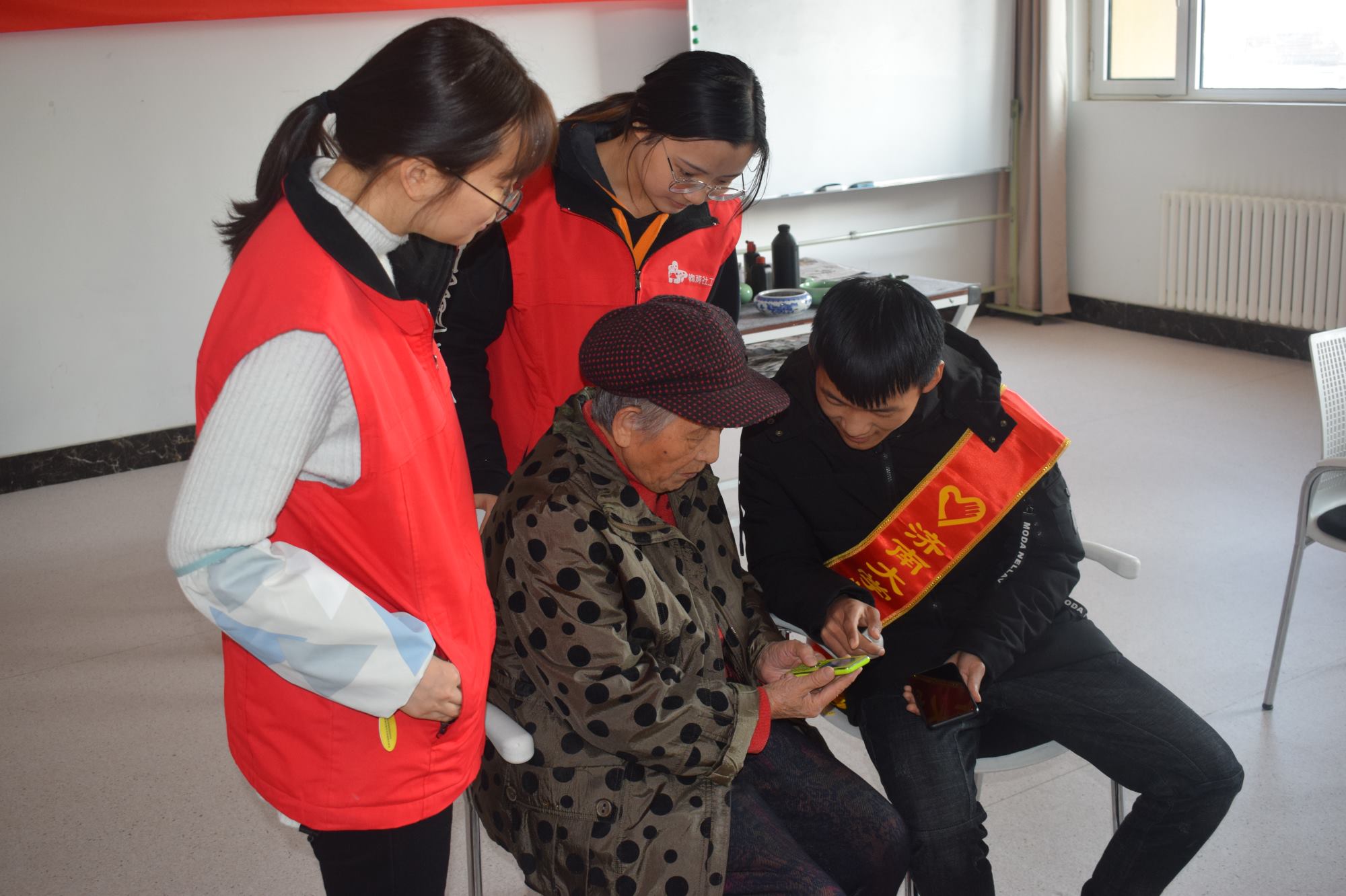 12月14日济南大学物理科学学院大学生志愿服务队第二次来到福利中心为住养老人提供陪伴服务。