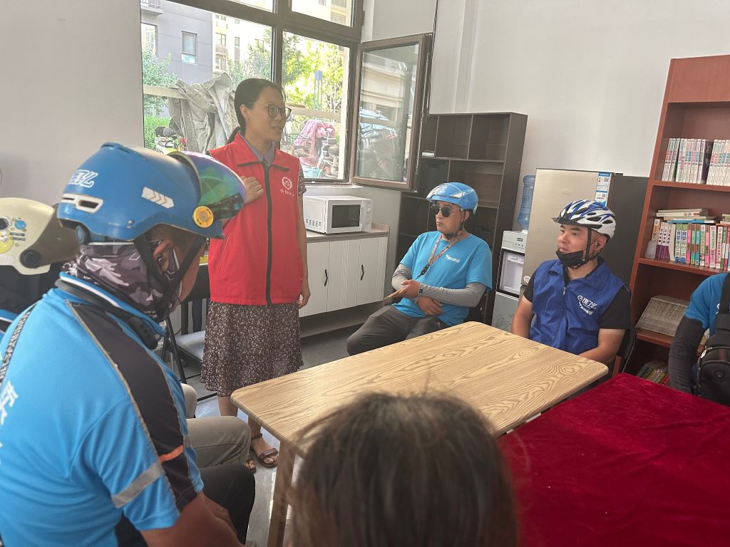 在济阳工会户外劳动驿站,社工为15名快递小哥、外卖配送员等送上清凉大礼包,感谢他们在炎热的夏日里付出的辛勤劳动,让户外劳动者感受到夏日里清凉。同时社工为他们普及了高温作业防护知识,注意防暑降温,劳逸结合,遵守交通规则,确保自身的健康安全。