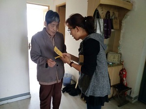 黄手环最初是为痴呆症老人佩戴的标识,其中附上老人的姓名、家址、亲人联系方式等,以便他人发现后报警或者送回,这在发达国家已是行之有效的救助常识。项目组首次筛选了16位患有较严重老年病的空巢老人,进行入户探访,了解老人身体状况,送去黄手环,向老人讲解使用黄手环在老年人外出时的重要性,及黄手环的使用方法,希望以此增加空巢老人应对突发状况的途径。