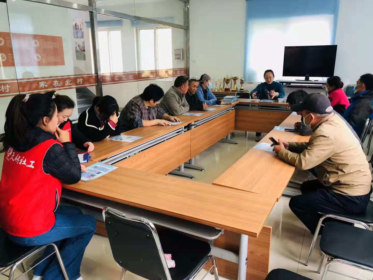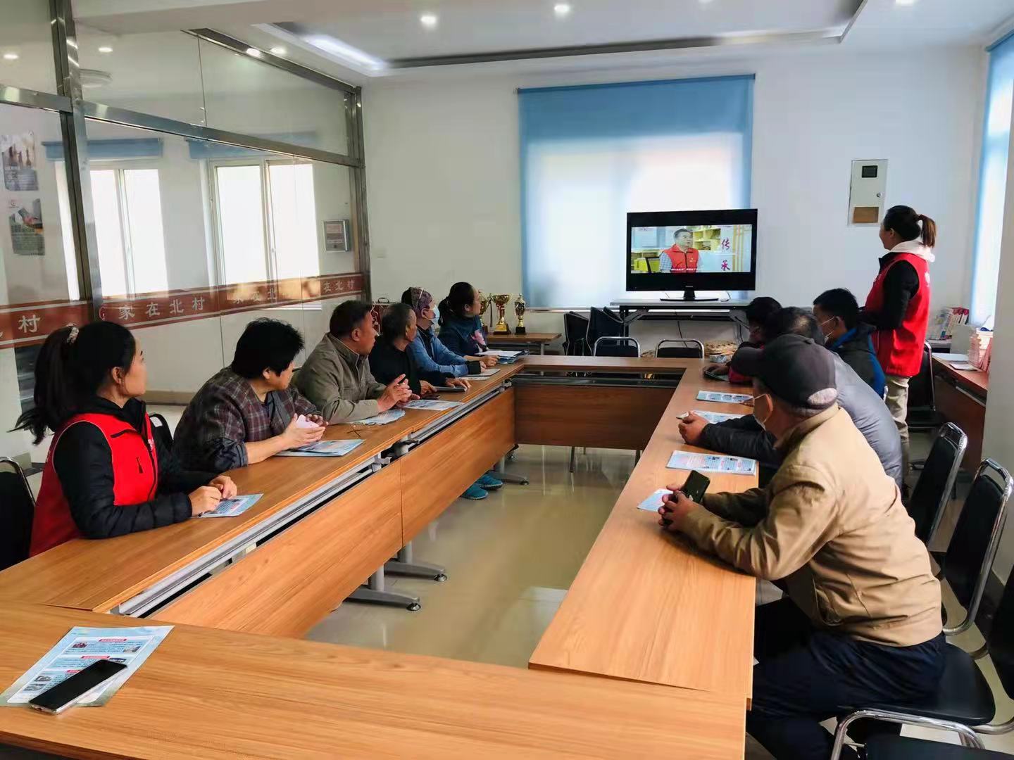 10月21日,北村街道社工站联合毕家洼西社区组织老党员志愿者观看《枫叶正红》“枫叶大篷车”纪录片,社区工作人员共同观看。
