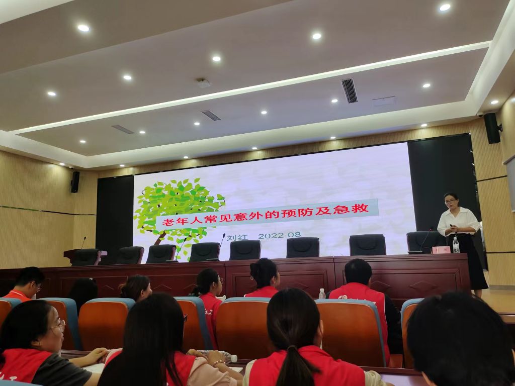 山东协和学院护理学院人文护理教研室主任、副教授刘红讲解老年社会工作者培训第二课《老年人常见意外的预防及急救》。从生活中真实案例引入,对老年人常见疾病、常见意外及如何健康预防、健康饮食等方面一一进行了讲解,提升社工应对突发状况时的应对能力。