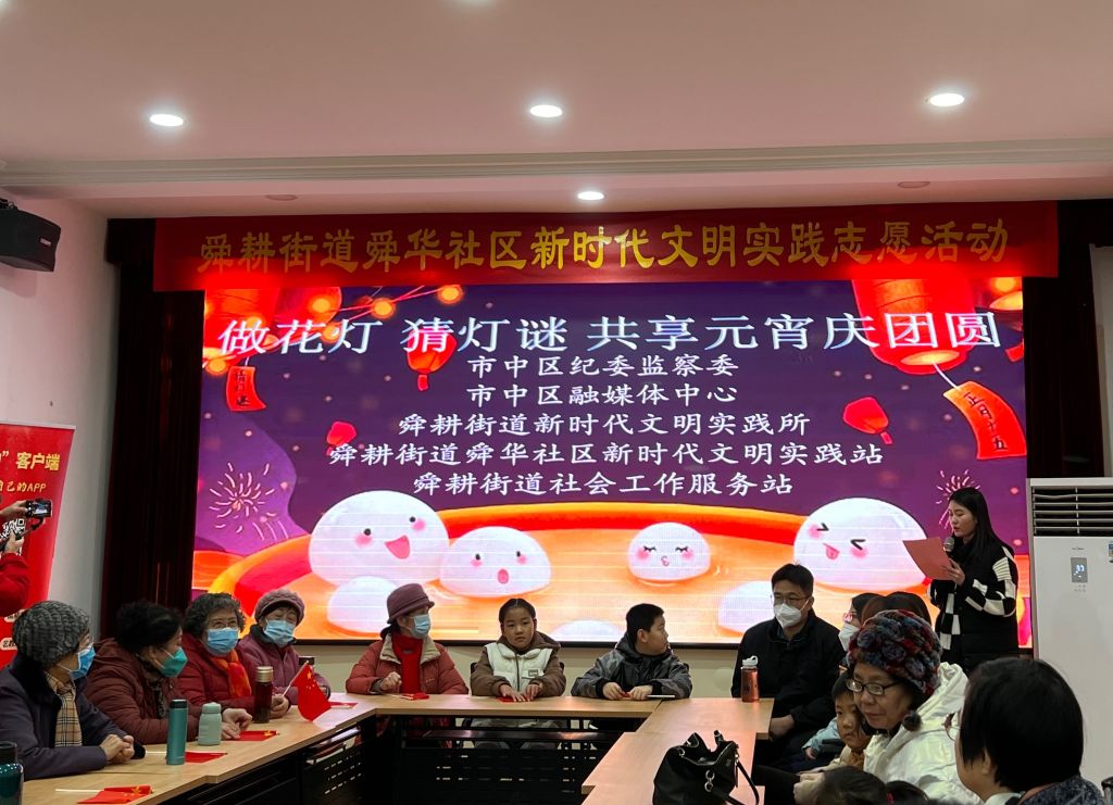 瑞虎辞旧岁,玉兔迎新春,在元宵佳节来临、阖家团圆之际,为了使社区居民更好的感受元宵佳节的喜气和欢乐,创造社区和谐喜庆祥和的节日氛围,2月2日上午,舜耕街道社工站联合市中区融媒体中心、舜耕街道舜华社区共同开展了“猜灯谜、做花灯,共享元宵庆团圆”活动。