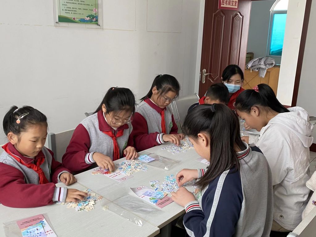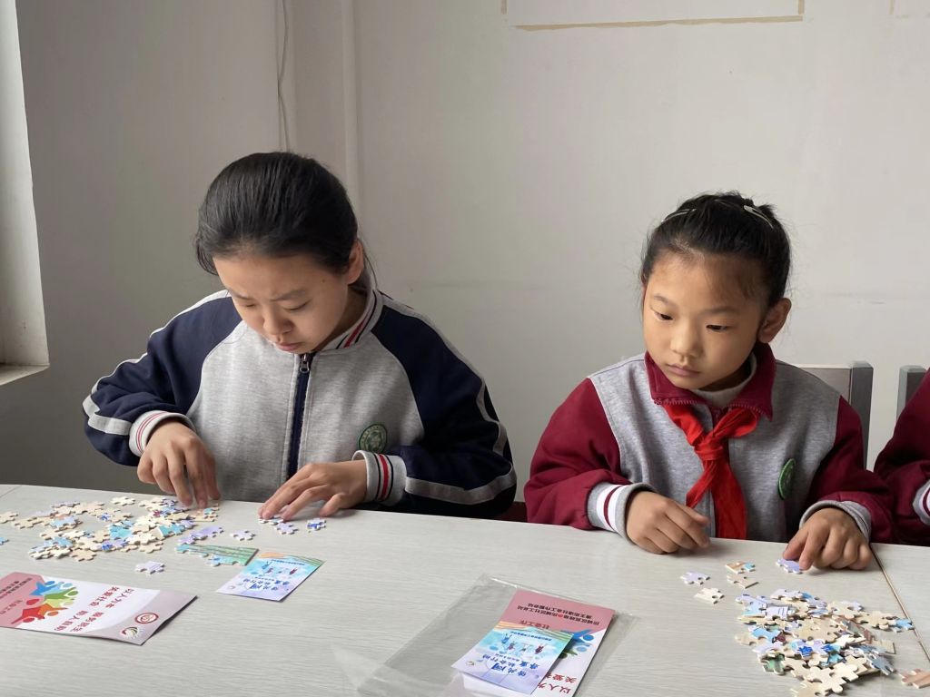 自由读书环节时,小朋友们都找到了自己喜欢的书籍,认真阅读。阅读结束后,小朋友们鼓起勇气用稚嫩的言语向大家分享自己最喜爱的书,他们的一行一言让我们感觉一个个活泼生动的故事就展现在我们的眼前。为了使读书日更加富有生趣,社工还给小朋友们准备了拼图类益智游戏,使用比赛的形式,小朋友们都在规定的时间内完成了拼图,活动气氛异常热闹。