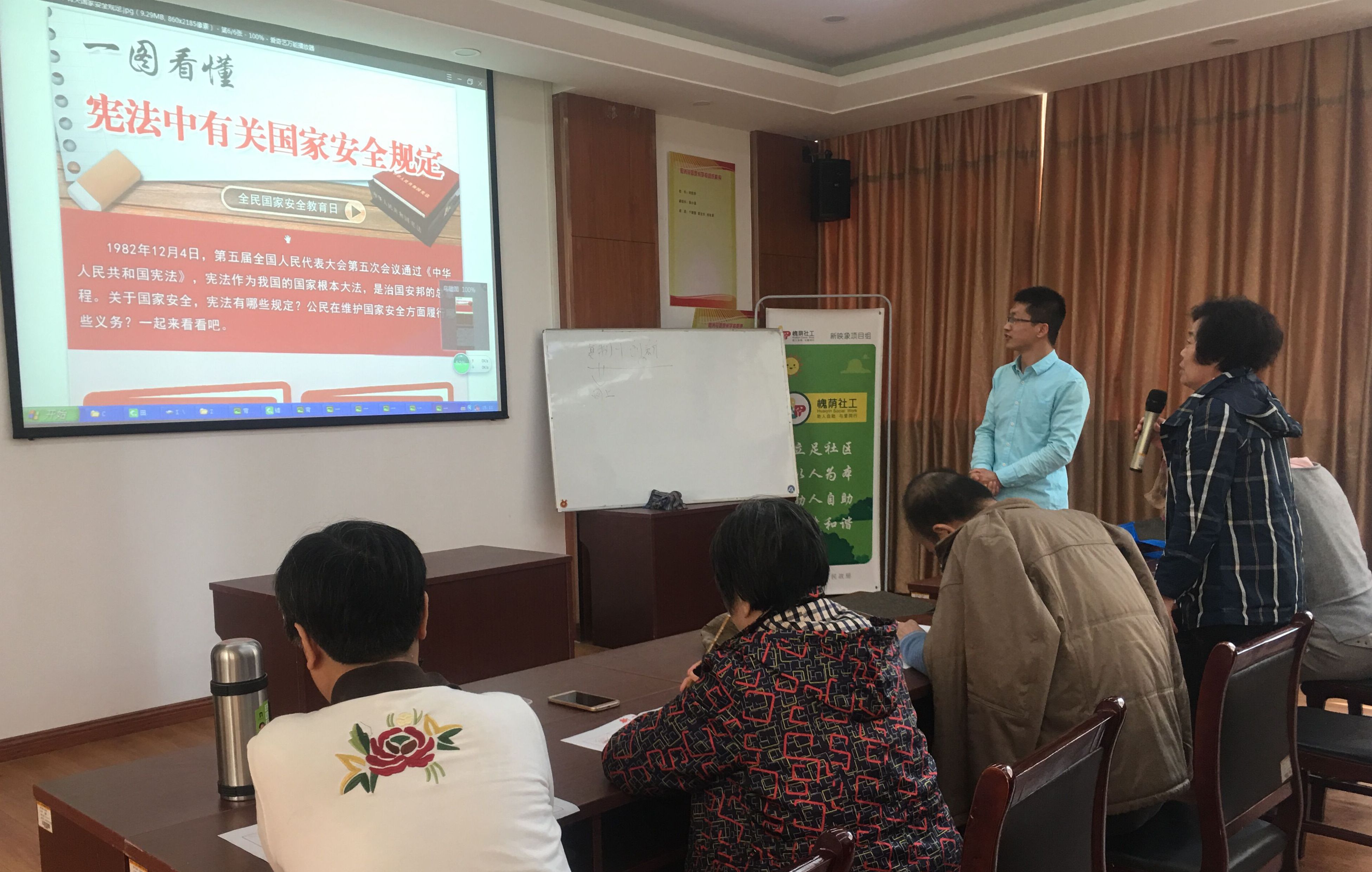 4月15日是第4个全民国家安全教育日,为进一步增强广大群众的国家安全意识,推动国家安全宣传教育工作深入开展,新世界阳光花园社区居委会和槐荫社工新映象项目组联合开展了一次普法宣传活动,本次培训共有10位文化志愿者参加。