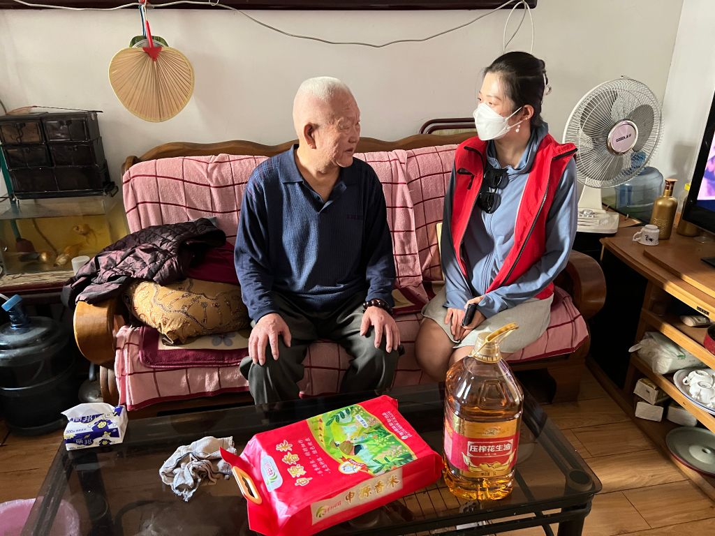 走访过程中,社工每到一户老人家庭,向他们送去米油等慰问品,并与老人亲切交谈,认真询问老人的身体状况、家庭成员、目前的生活状况和现阶段存在的困难等情况,社工鼓励老人保持积极乐观的生活态度,当生活中遇到难处就第一时间联系社工,社工会积极链接资源帮助老人解决困难。
