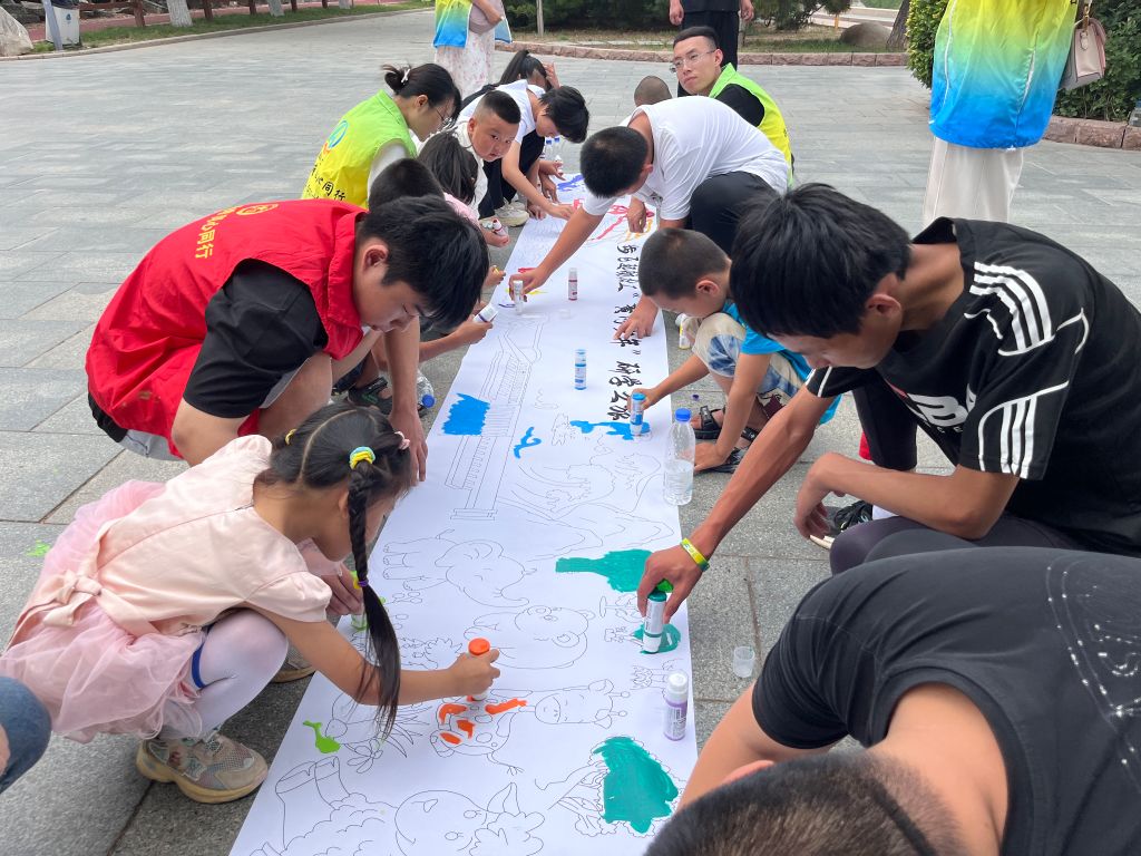 悠悠黄河水,滔滔故乡情,本次研学活动的第三站是济南百里黄河风景区。在优美的黄河景观里,社工与孩子们一起绘制百里黄河画卷,并在绘制过程中为孩子们讲解动人的黄河故事,引导孩子们认识河岸治理与水利工程在保障黄河安澜,促进经济发展中的重要作用,学习坚韧不拔、自强不息的黄河精神,激发孩子们的强烈的民族自豪感和爱国主义情感。最后,在大家的齐心协力之下,百里黄河画卷绘制完成,生动地展现在大家面前,这里面凝聚着孩子们对起步区家乡的深厚情怀。