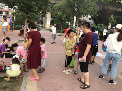 小朋友们对于这次活动的热情非常高涨,在活动开始前,他们就提前来到活动中心。积成社的社工们提前给他们讲解了活动注意事项,作为“熟人”的小朋友们对活动注意事项当然很了解啦!社工给他们分发了小黄帽,社工和小朋友们及家长们一起来到了西河小广场。小朋友们纷纷布置他们的摊位,很快一个个小摊位正式营业啦!没有准备商品的小朋友干脆就加入了志愿者的队伍。集市上的商品依旧很丰富,有文具、书籍、玩具、手工作品、还有小朋友们在手工课上绘制的扇子。