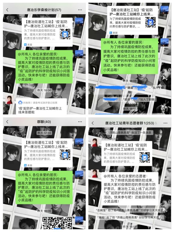 自疫情发生以来,唐冶社工站不仅助力疫情防控一线工作,还积极运用社工的专业方法开展“亲子云课堂,走新更走心”居家网学家长陪伴攻略微课堂、“保护环境,守护家园”主题教育以及‘疫’起防护—唐冶社工站喊你上线来答题啦等系列活动,积极宣传科学应对疫情的知识,缓解居民的紧张情绪,为居民解惑答疑,提高居民的自我保护意识,进一步增强居民的幸福感、安全感。