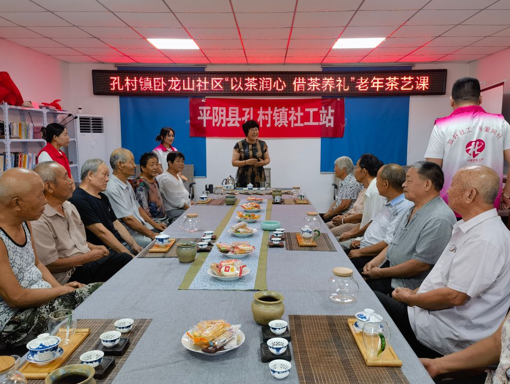 为提高社区老年人的精神文化生活,感受茶文化带来的魅力,8月10日,平阴县孔村镇社工站在卧龙山社区开展“以茶润心 借茶养礼”为主题的老年茶艺课活动。