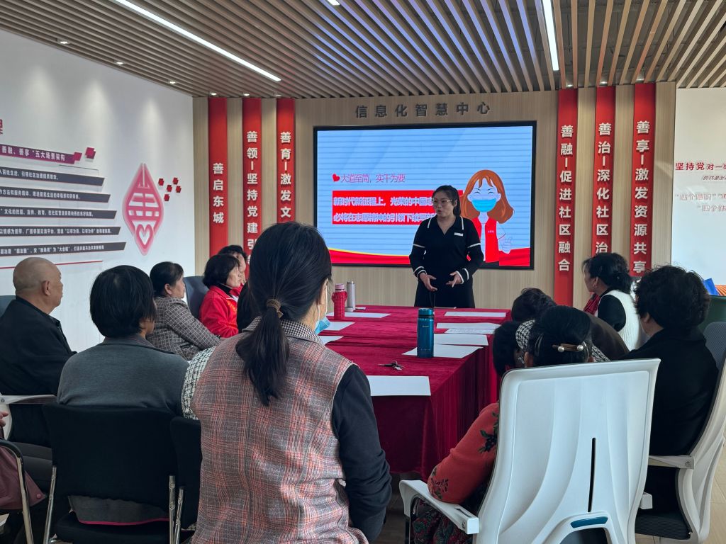 活动当天,志愿者齐聚一堂。社工首先为组员详细介绍了社工站的职能与服务内容。社工站作为社区服务的重要一环,致力于为居民以及弱势群体提供各类帮助与支持,同时也是志愿者们发挥力量、实现价值的平台。接着,社工结合社区实际,针对志愿服务的各个方面进行了深入浅出的讲解。与志愿者围绕“什么是志愿服务”“志愿者可以做什么”“需要注意什么”等方面展开讨论和分享,志愿者提出“可以跟独居和空巢的老人唠唠家常;有理发技能的志愿者可以帮老人剪剪头发;多多走访困难家庭,了解他们的难处,做点力所能及的事……”志愿者纷纷踊跃发言,现场气氛十分活跃。