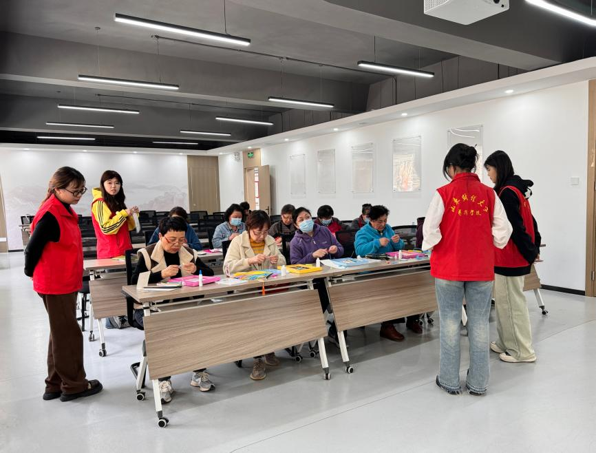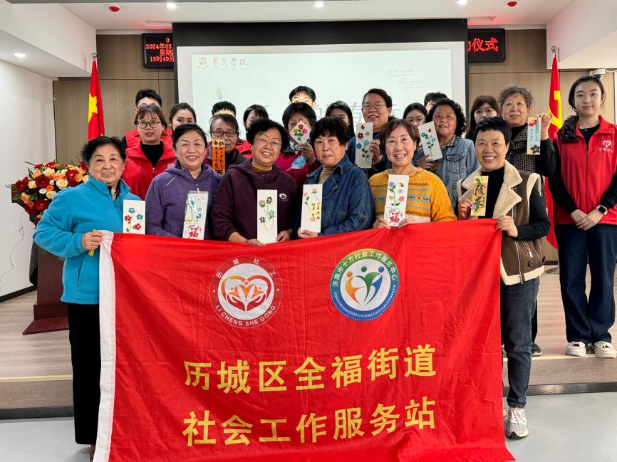 杨春三月,万物复苏,伴随着春天的暖阳。3月28日下午,全福街道社工站的社工和山东财经大学的志愿者们在烟厂社区为13名社区老年人开展了主题为“纸上春意”的手工衍纸活动,旨在弘扬传统文化,促进居民交流,增进邻里关系,营造良好的社区文化氛围。