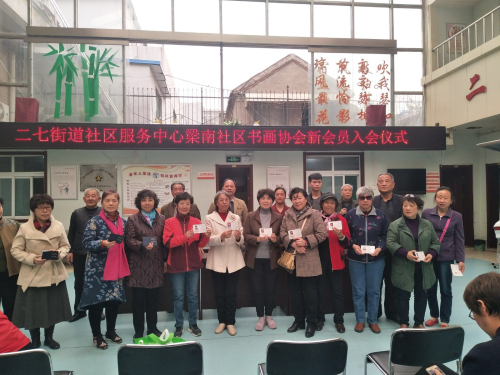 为深入贯彻十九大关于挖掘中华优秀传统文化内涵的重要指示,进一步壮大社区传统文化建设队伍,二七新村街道社区服务中心、梁南社区书画爱好者协会联合举办了新会员入会仪式。