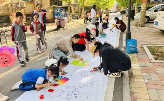 本次活动邀请到了社区的孩子们共同参与,通过绘画的形式,让孩子们在享受创作乐趣的同时,传承和发扬家族的优良传统。活动在一片欢声笑语中展开,孩子们在社工的指导下,拿起画笔,在百米长的画布上尽情挥洒自己的想象。画布上,既有传统的家庭肖像,也有现代家庭的日常生活场景,更有孩子们对未来家庭的憧憬。每一笔每一划,都承载着孩子们对家庭的热爱和对生命的尊重。