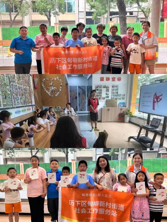 7月8日至7月19日,为减缓家庭暑期照护压力,增强儿童自我探索能力,社工站开展“成长奇遇记-儿童历奇探索小组”活动8次,共计服务56人次。 活动过程中,社工带领辖区儿童探索山东省博物馆、美术馆等历史文化古迹,增强探索意识,并通过分组讨论、任务协作增强儿童参与积极性和团队协作能力,促进儿童健康成长。