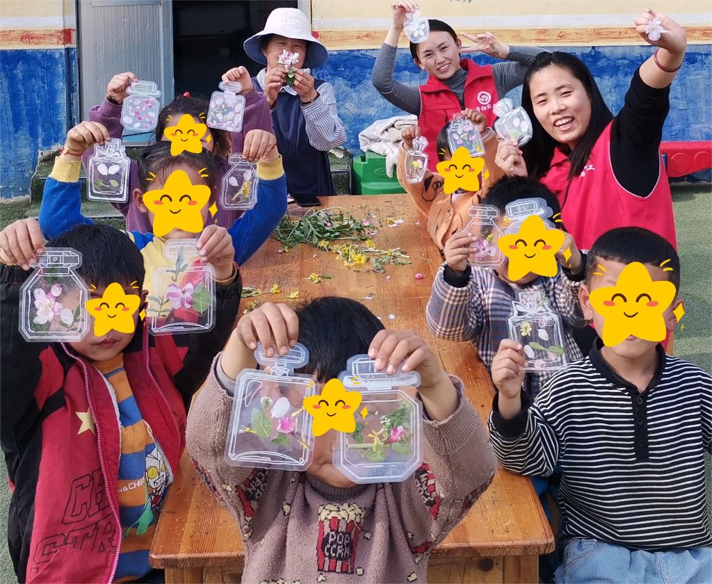 活动开始后,社工带领孩子们通过野外采风收集花、草、树叶等手工原材料,并向孩子们介绍了书签的材质,制作步骤,强调制作过程中的注意事项。社工首先为大家做示范展示,不一会儿功夫,一张色彩斑斓的创意书签在社工的手中呈现出来,孩子们看着一张小小的书签在社工的手中变成了一幅美丽的作品,都纷纷表示想试一试。随后,社工拿出了事先准备好的工具发给了孩子们并指导他们开始动手制作自己的作品。