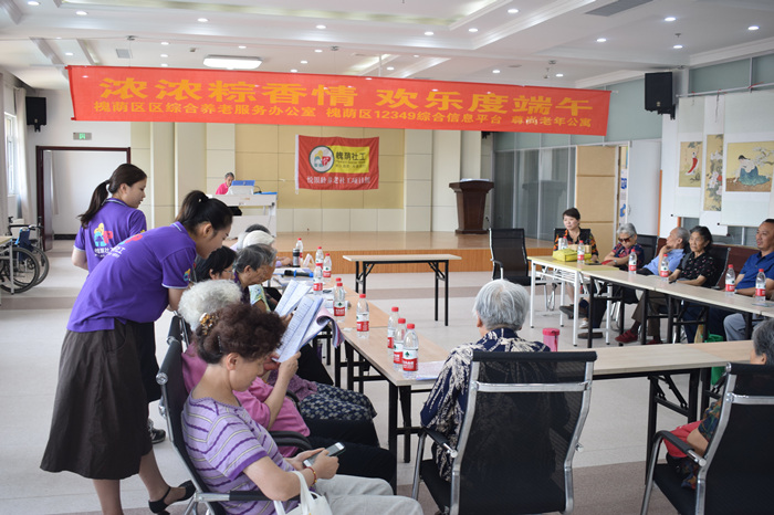 农历五月初五,是中国的传统节日——端午节。为了保留传统民俗,营造节日气氛,活跃住养老人日常生活,6月15日悦银龄养老社工项目组联合槐荫区综合养老服务中心在福利中心五楼多功能厅为住养老人和槐荫区军休所老人举办了“浓浓粽香情,欢乐度端午”包粽子活动。