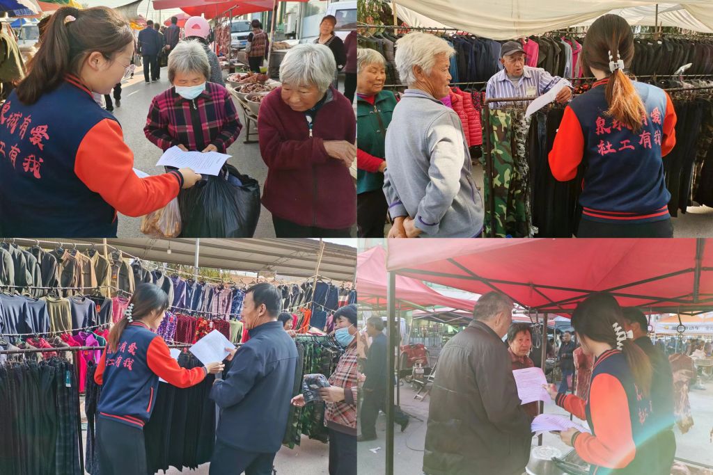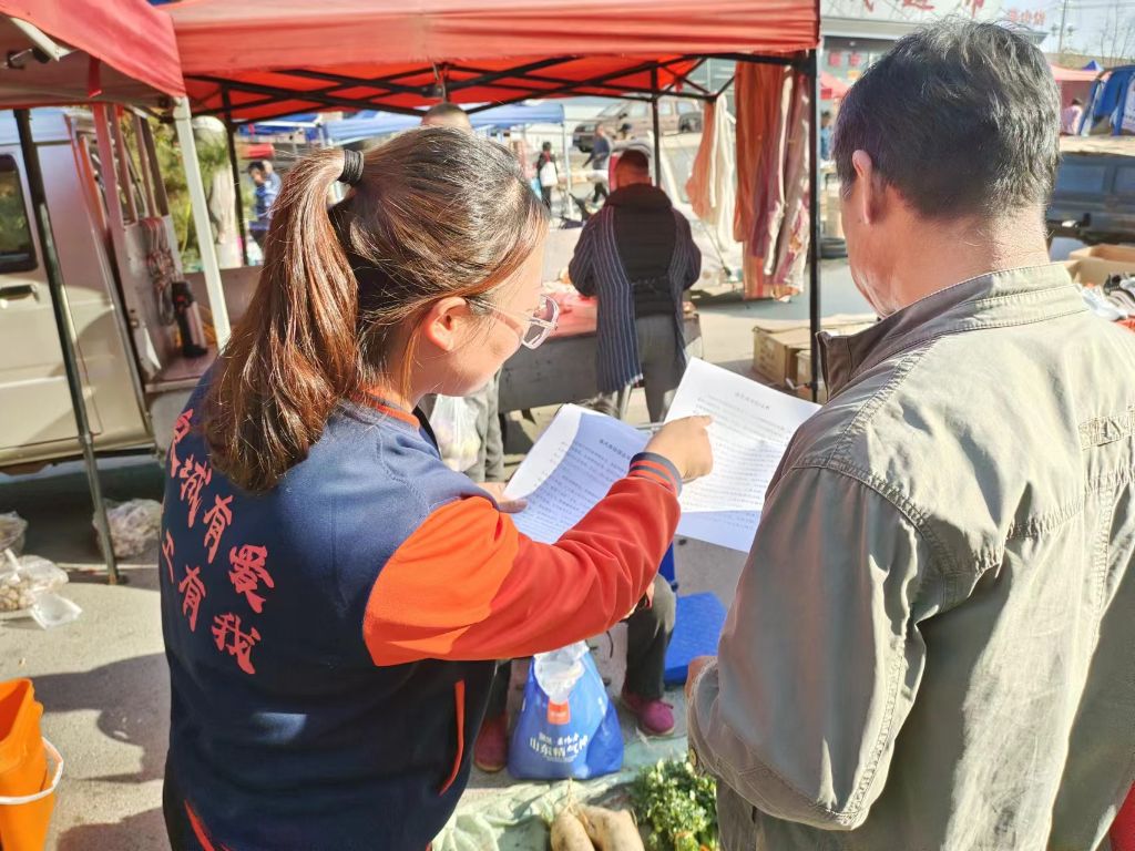 为了推进婚姻领域移风易俗、破除陈规旧俗,带动社会改革新风进入千家万户,11月2日,苗山镇社工站联合镇民政办、镇宣传办走进苗山大集开展了推进“深化婚俗改革,弘扬文明新风”宣传活动。