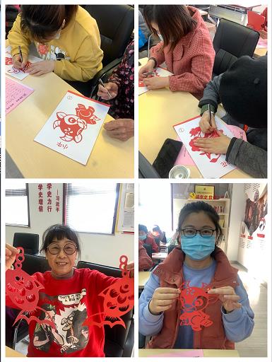 活动伊始,工作人员向大家讲解中华民族的刻纸文化并展示相关作品,并从折叠到剪法一步一步进行细致地教授。一把普通的刻刀,一张普通的纸,在大家的热情创作下,变成一幅幅活灵活现、栩栩如生的刻纸艺术作品。作品完成后大家也纷纷进行展示,露出开心的笑容。