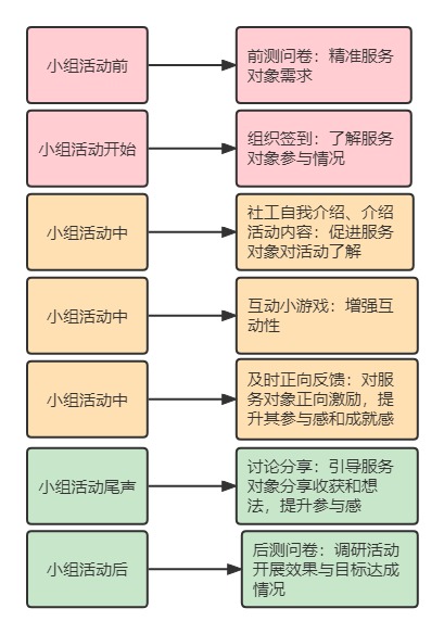 社工开展线上服务不同于一般的线下服务,需要充分考虑每一个环节设计的合理性,以及是否适合在线上进行。在线上服务过程中,社工无法面对面观察服务对象参与情况,因此在开展线上活动时应更加注重互动环节设计,提升居民参与感与互动性。以本次青少年疫情防控线上支持小组为例为大家分享线上服务环节设计: