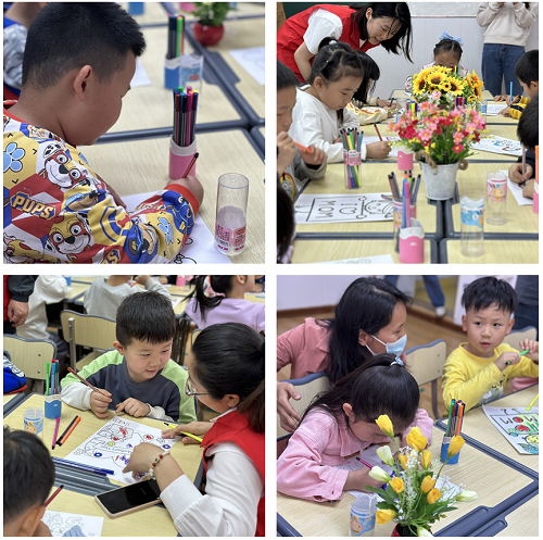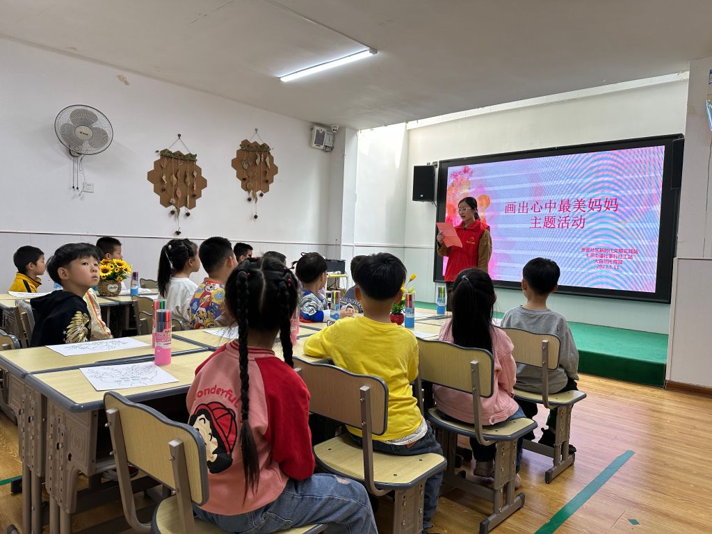 孩子们全神贯注地听志愿者的介绍,并积极地分享了与自己母亲之间的温馨小故事。社工站精心为孩子们准备了画笔,孩子们用稚嫩的双手借助画笔在画卷上描绘出“我心目中最美丽的妈妈”。