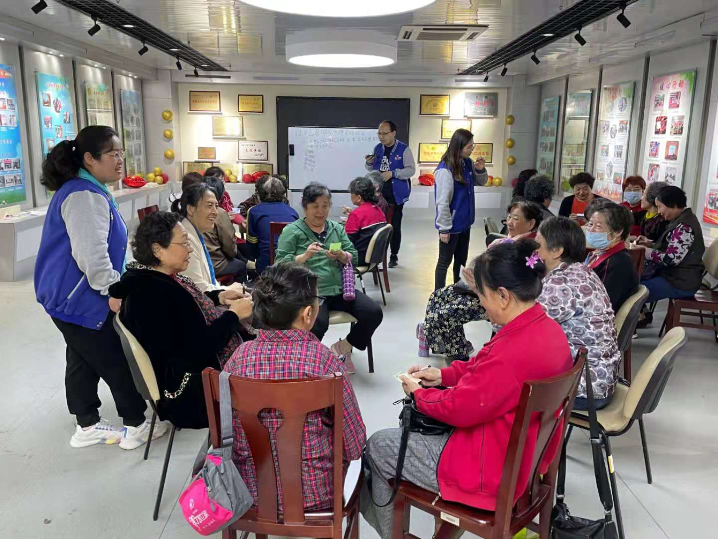活动伊始,社工站社工带领大家进行热身小游戏“趣味介绍”,使大家在一片欢快氛围中增进对彼此的熟悉感。接着,社工引导大家填写了志愿者登记表以及志愿者需求调查问卷,便于社工站对志愿者规范、有序管理以及开展前期需求调研工作。最后由社工站负责人马庆文根据前期与社区的沟通交流,为大家介绍新周期社工站就志愿者的各项工作安排及发展方向等事宜。志愿服务较原来进行了优化升级,社工站计划将志愿者队伍进行分类统一管理,志愿服务不仅在社工站,还将辐射到社区以及社区居民。另外,社工站将通过制定嘉许回馈制度和星级评定制度,建立健全志愿者激励机制,推动社区治理与社区建设。志愿者们听完之后对于新周期志愿服务的变化展开了激烈的讨论,有的志愿者对此仍有困惑,站长以及社工耐心地解答她们的疑问,她们也纷纷表示以后会更加积极地提供志愿服务,发挥自身余热。