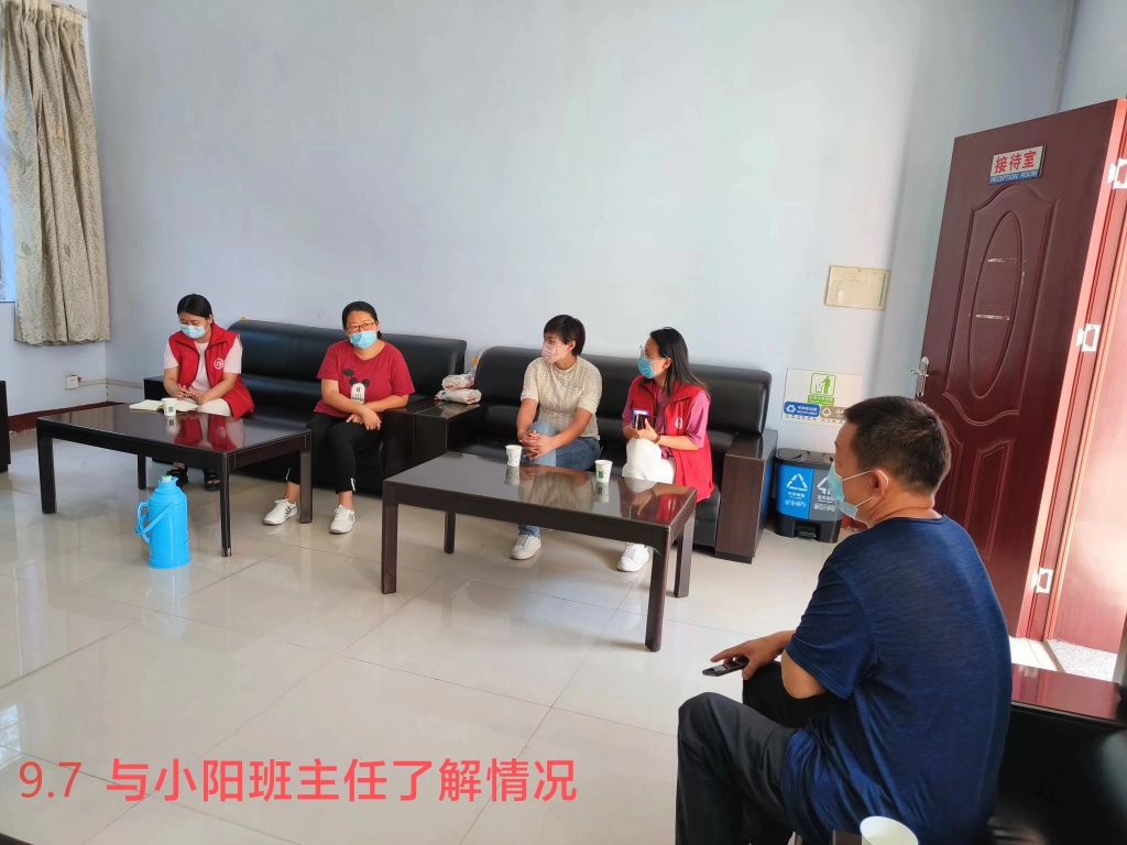 访谈结束后,社工根据小阳的实际情况与心理学会老师进行了沟通请教,并与小阳班主任取得联系,于9月7号与手拉手里辛帮扶团团长入户、入校对小阳的基本情况及在校期间的表现、与同学的相处情况进行了解,争取通过多方面努力尽快引导小阳丢掉心理包袱,开心学习。