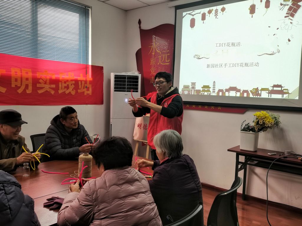 为了丰富老年人的娱乐活动,挖掘老人的潜能,让缺乏自我有能感的老人增强自我认同感,让他们感受到晚年生活的乐趣。1月2日,东风街道社工站在新园社区开展“活跃老龄 乐在创新”手工DIY花瓶活动。