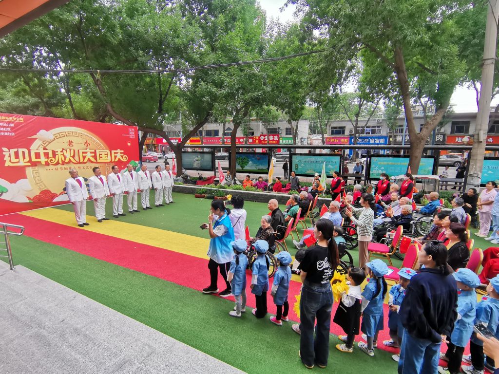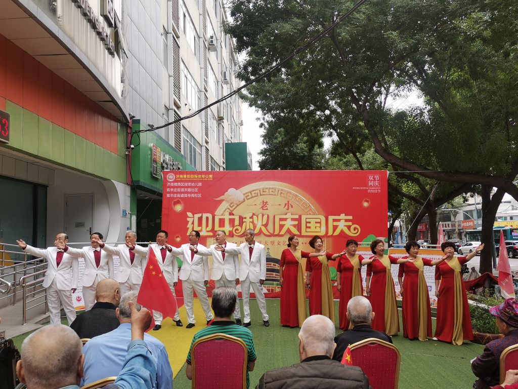活动开始由曜阳老年公寓院长孟庆莲以及拔萃幼儿园园长孙裕兰进行致辞。本次汇演由舞蹈《灯火里的中国》拉开序幕,通过歌曲《鼓浪屿之歌》、舞蹈《童心向党》、京剧选段《钓金龟》、诗朗诵《中华诵》、豫剧《都盼你在农村大有作为》以及小合唱《咱们老百姓》等不同形式轮番上演,精彩纷呈。在活动现场观众纷纷拿出手机拍下精彩瞬间,发出阵阵喝彩以及热烈掌声,以表达自己所感受到热闹欢烈的节日氛围。最后以街道社工站孵化的社区社会组织“辛东悦”混声合唱《春风十万里》结束本次汇演为其画上圆满句号。