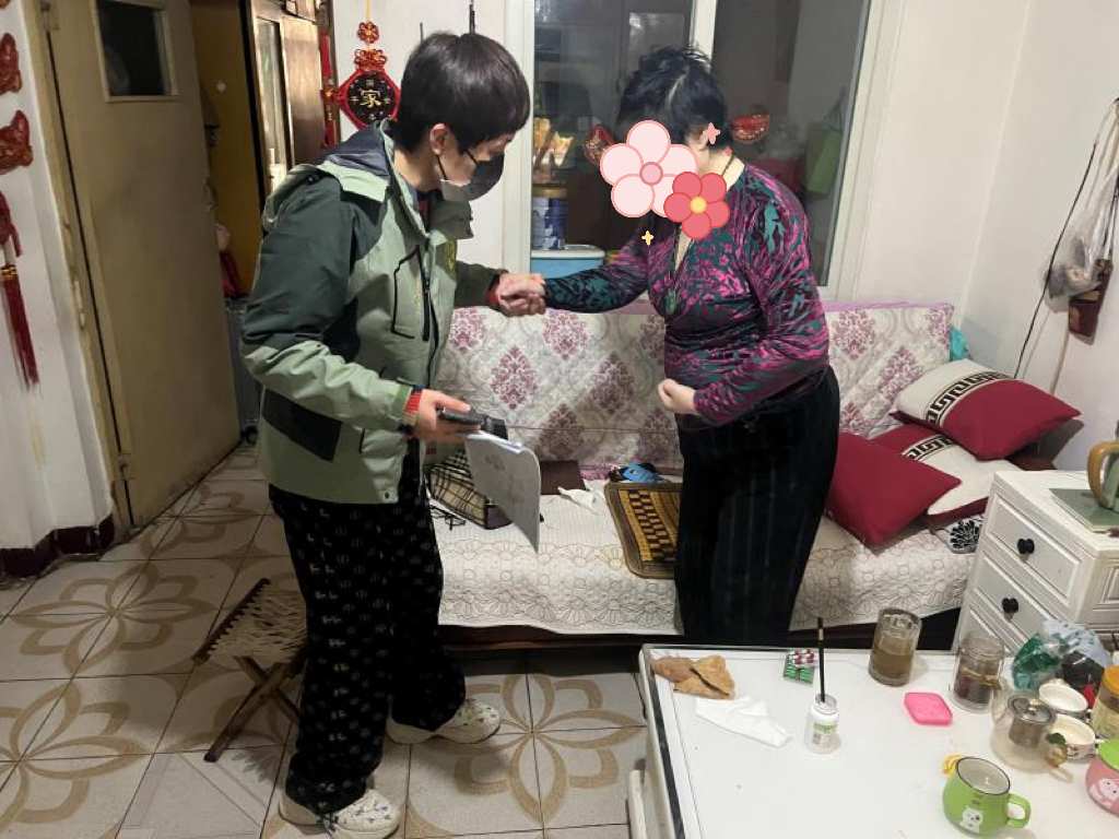 在前期的入户调查中社工发现很多老人因为子女不在身边,老人们时常感到寂寞,社工在了解情况后,积极入户开展老年人心理疏导服务活动。走访中,社工与入户对象悉心交谈,了解其生活状况及家庭情况,通过真诚、专注的倾听以及适时的共情、鼓励,使入户对象敞开心扉充分表达自己,拉近双方距离,建立信任关系。社工充分尊重入户对象的思维模式、文化背景和价值观,运用同理心的技巧,设身处地去思考对方的处境,接收对方传递的信息和情感,以观察者和倾听者的身份及时将其需求进行记录,社工还鼓励老人应当学会自我调节,培养兴趣爱好,如养花、下棋、健身等,切实丰富自己的老年生活,多学习多动脑、保持乐观心态,鼓励其积极面对困难和处境,减轻心理压力,使他们感受到理解、尊重和关爱。