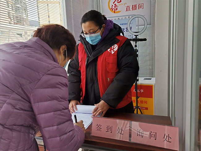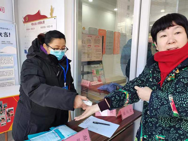 选举当天,社工站作为选举主阵地,驻站社工分别负责选民登记签到工作和流动选票工作,一方面把控入口,严格按照疫情防控工作指示,为到场的选民测量体温、查看行程码、填写选民签到手册,发放口罩,查验选民证。另一方面,针对辖区低保户、腿脚不便的空巢和独居老年人等特殊群体,为充分保障弱势群体的选举权和参与社会公共事务的权益,社工携带流动票箱挨家挨户上门收集选票。