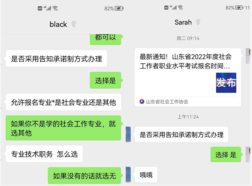 3月初,有辖区社工专员主动联系孔村镇社工站,提出有意向参与社工资格考试报名,社工耐心解答了相关问题,并分享了考试经验。在与咨询者的交流过程中,社工发现辖区内部分社区工作者和社工专员面对社工资格考试存在不同的疑问,针对此类情况,社工站与各村居展开了对接,并建立微信群,帮助大家了解了社工职业资格考试,解决了大家的问题。4月26日,山东省社工职业资格考试报名系统正式启动,孔村镇社工站协助辖区内的社区工作人员和社工专员成功报名,并向他们分享了考试知识点,同时链接了培训资源,以帮助大家更好地应对考试。