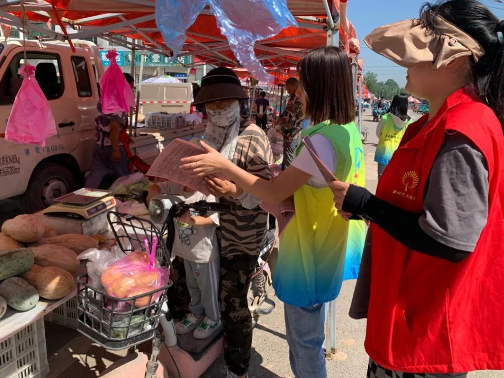 随着夏季的来临,未成年人溺水事故进入高发期、频发期,为最大限度防止溺水事故发生,提高未成年人安全防范意识。当日,社工和志愿者们走上街头,以分发《珍爱生命预防溺水》宣传页的形式向赶集群众宣传防溺水安全知识,并用通俗易懂的语言,结合溺水事故案例深入浅出地向村民讲解如何防溺水、溺水的自救等知识,让各位家长提高警惕,不断加强孩子安全意识和自我保护意识,提高孩子们的避险防灾和自救能力,严防意外事故的发生,重点教育孩子做到“六不准”,以及遇到同伴溺水时避免手拉手盲目施救,要立即寻求成人帮助,智慧救援。