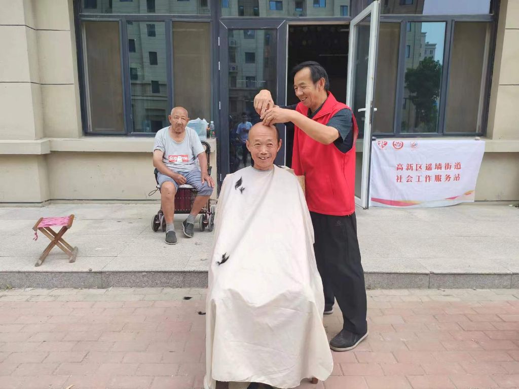遥墙街道社工站开展“爱心义剪 情暖馨苑”志愿活动