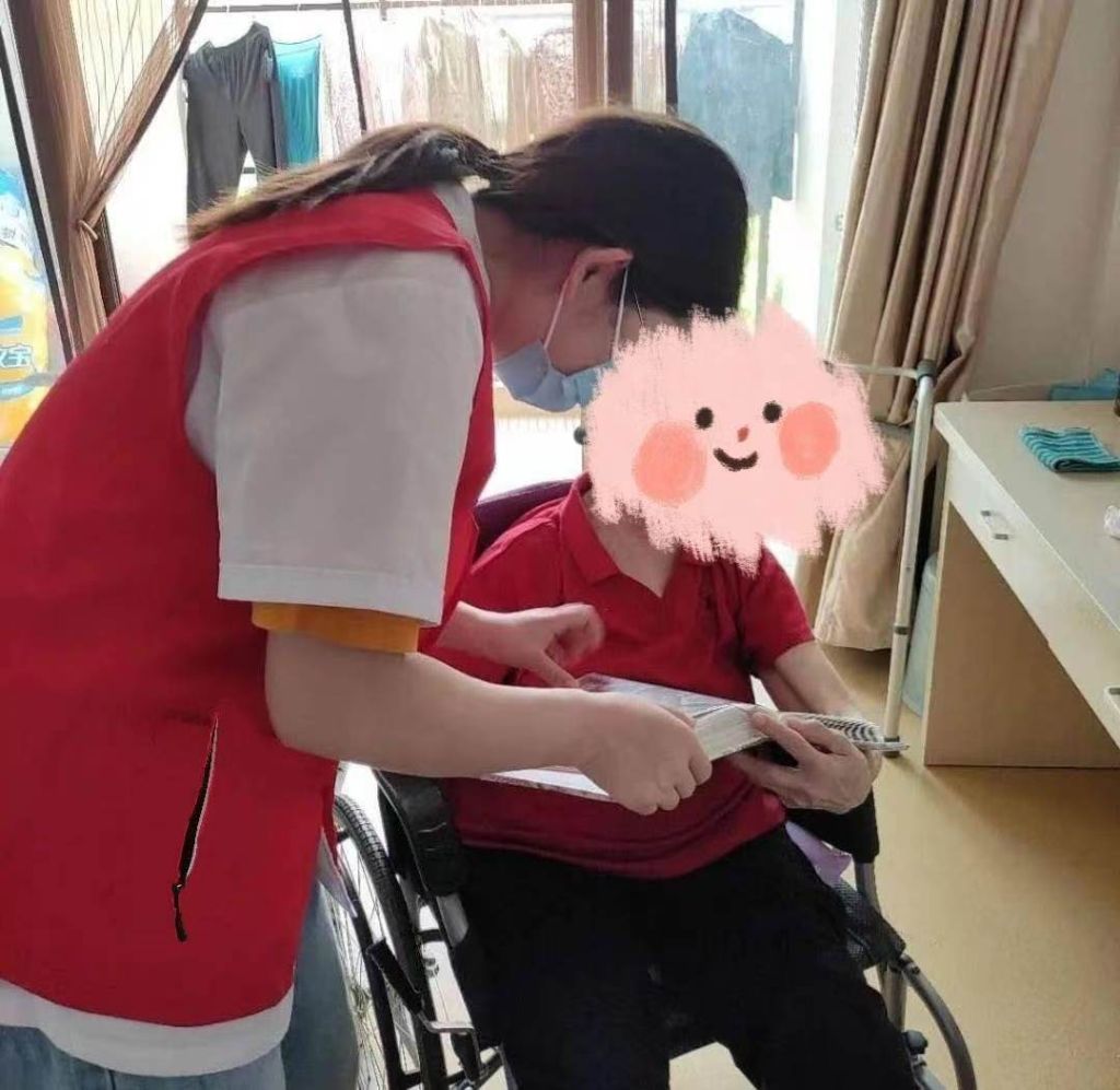 3.协助服务对象乘坐轮椅下楼,外部的接触,减轻孤独感;